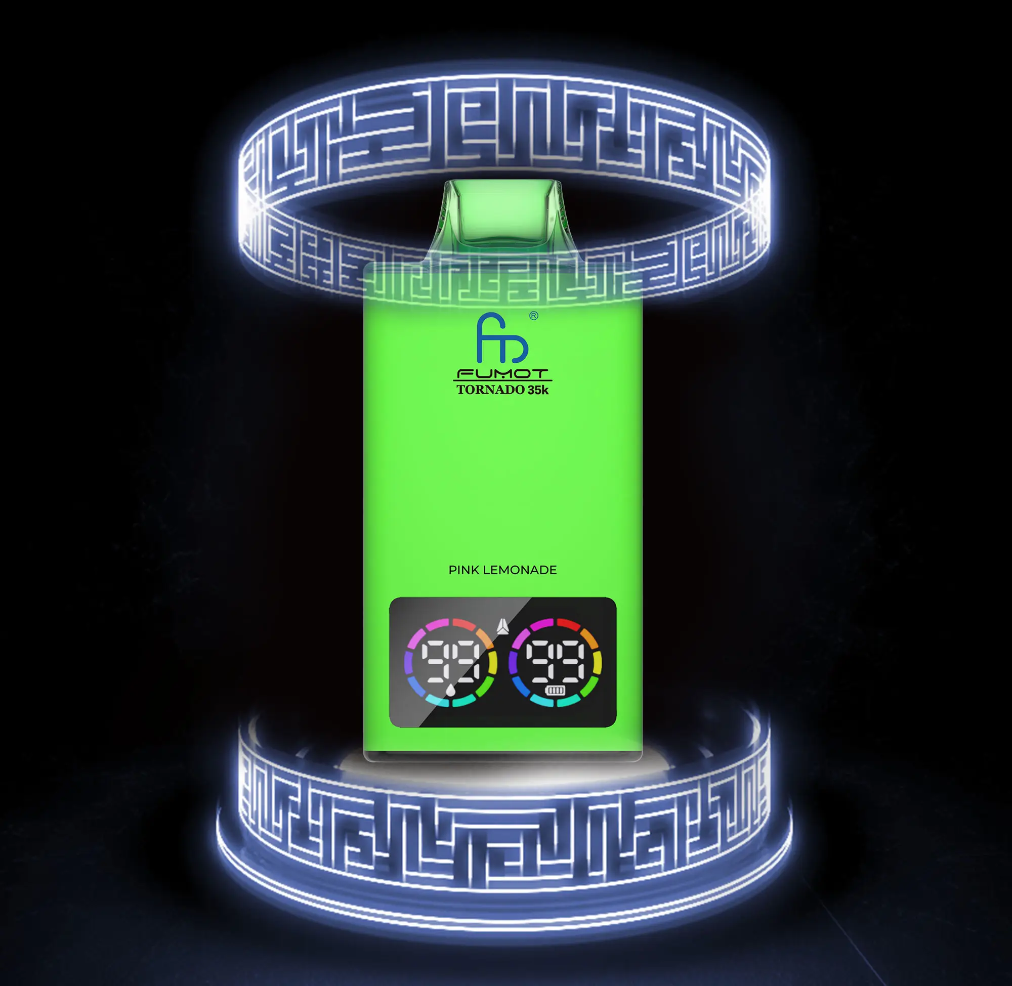 Fumot 35K sets itself apart with a vibrant LED display. This feature offers real-time information, providing vapers with essential details at a glance. The display shows battery life and oil level. This not only adds a futuristic touch but also enhances the overall user experience, making it easy to track usage and know when it’s time for a recharge. Stay informed and in control with our LED Display disposable vape.