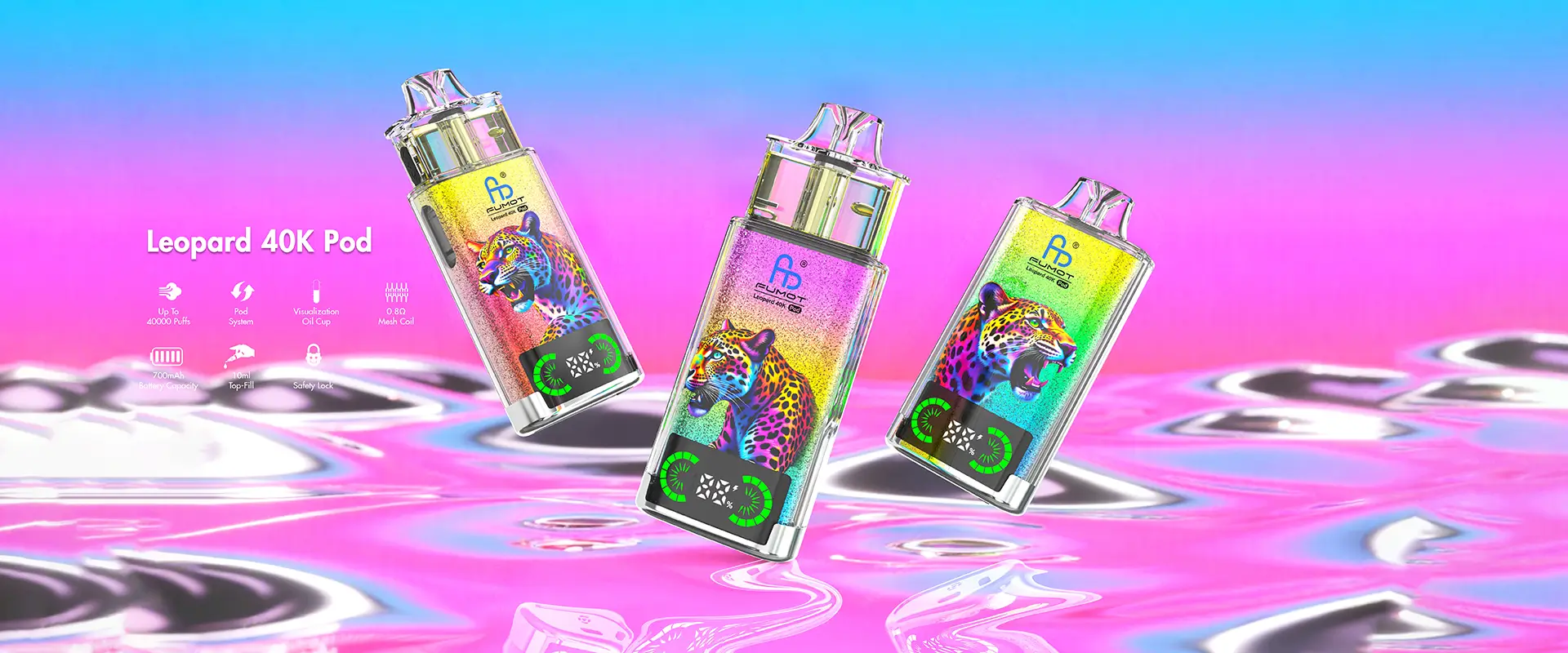 - 0.4Ω Dual Mesh Coils: Low-resistance coils ensure even e-liquid atomization, producing rich, full-bodied flavor and dense clouds with every puff.
